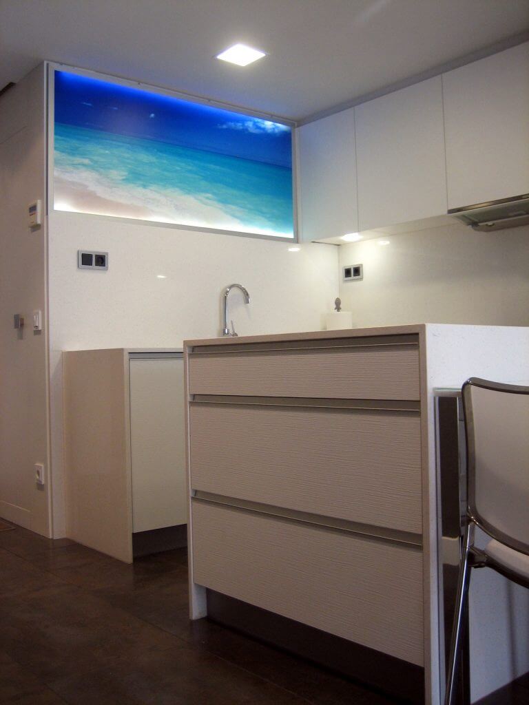 En la nova distribució del habitatge és crea una nova cuina més funcional per un apartament d’estiu. El blanc és el color utilitzat per donar la sensació d’amplitud a l’espai.